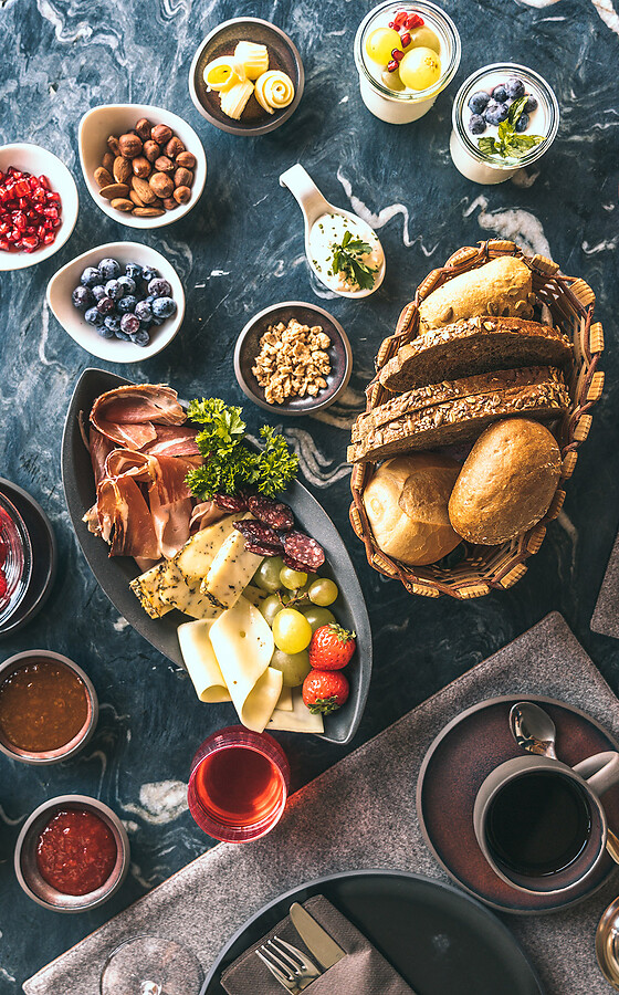 - Covered breakfast table in the chalet, buffet breakfast or bread service with many products from our own farming - All can do, nothing must do