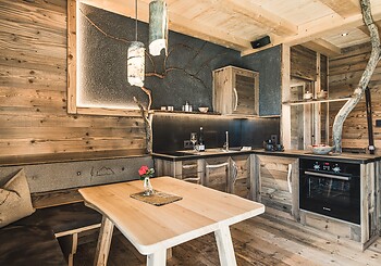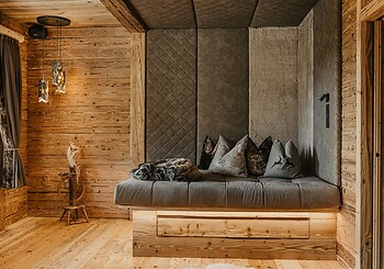 Gli interni sono caratterizzati da legni antichi naturali e pietre provenienti dal nostro terreno, arricchiti da artigianato altoatesino e pezzi di design firmati.
